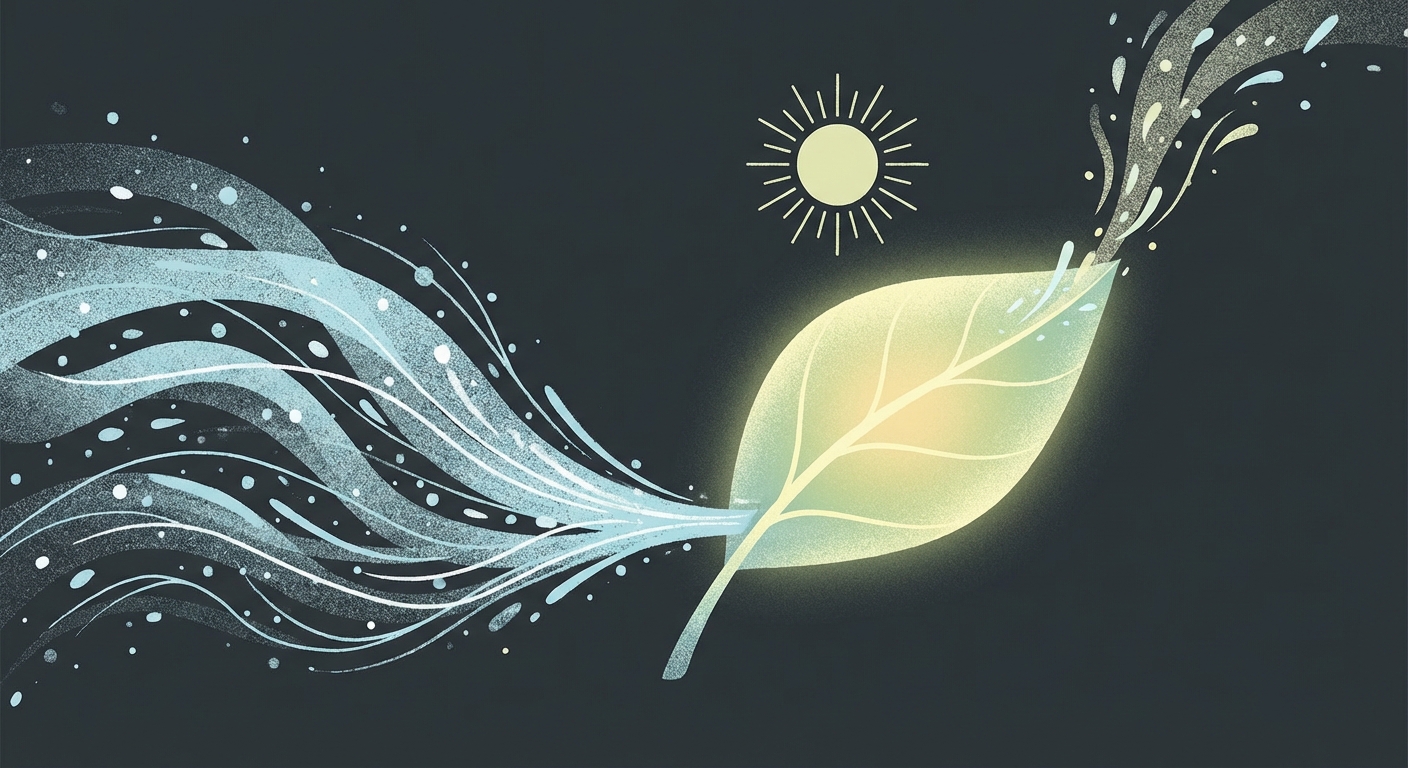 Explanation: Plants absorb carbon dioxide (CO2) for photosynthesis; the simplified balanced equation fixes six CO2 molecules to produce one glucose molecule (C6H12O6). This CO2 uptake powers carbohydrate synthesis.